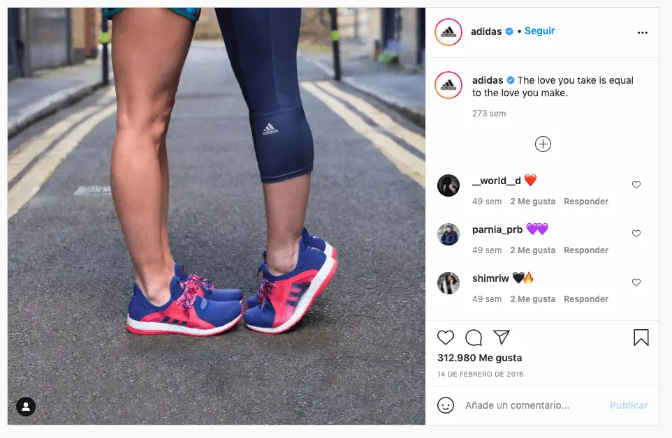 Este es el caso de Adidas, que llevó a cabo en San Valentín de 2016 una campaña protagonizada por dos mujeres: