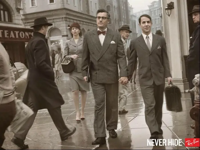 Una de ellas se ambienta en la década de los cuarenta y el protagonista es un hombre que pasea de la mano de su pareja al tiempo que luce una evidente expresión de orgullo en su rostro rodeados por personas que los miran con clara desaprobación.
